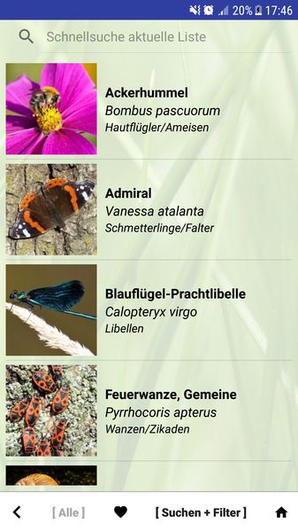 Die Bestimmung erfolgt über die Bilder der Artenlisten welche Sie