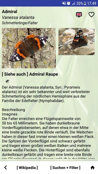 Die App ermöglicht die Bestimmung anhand von Merkmalen und enthält Informationen zu allen Bereichen der Flora und Fauna. Alle wichtigen Funktionen sind offline nutzbar. Für die Verwendung unterwegs in der Natur.