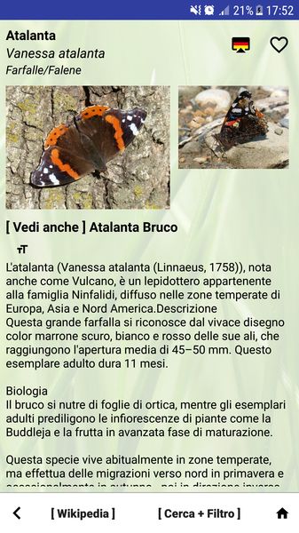 Una guida della natura offline in italiano, inglese, tedesco, francese e spagnolo.