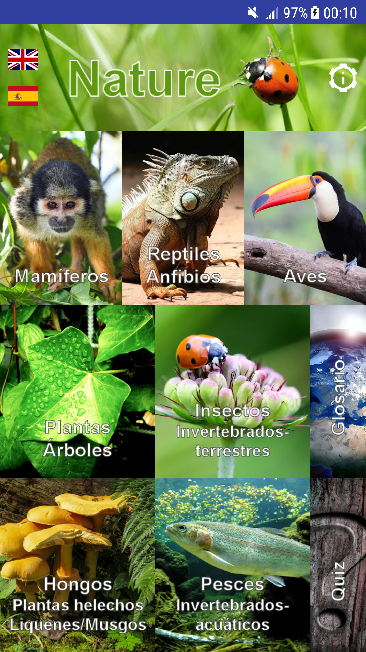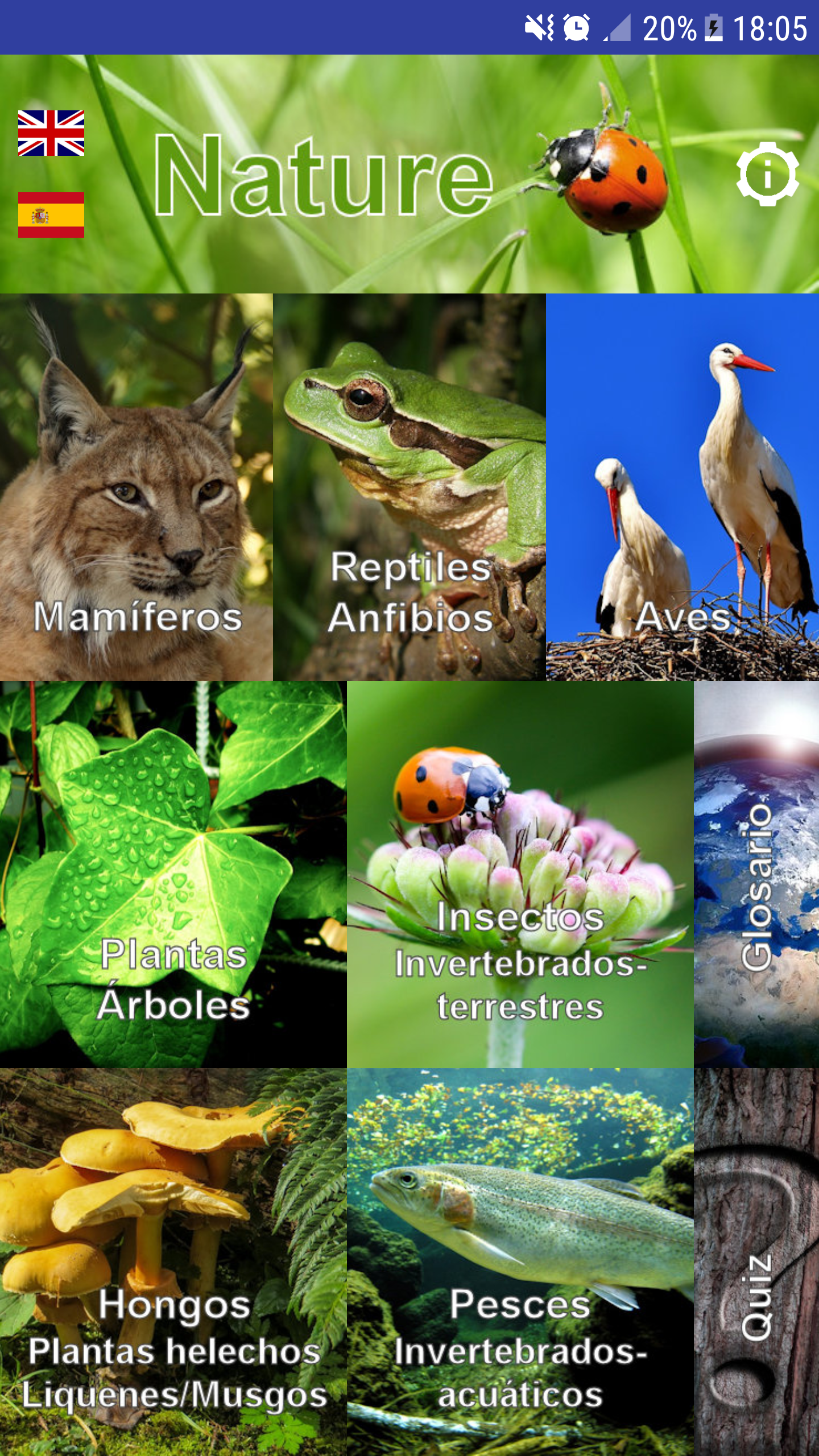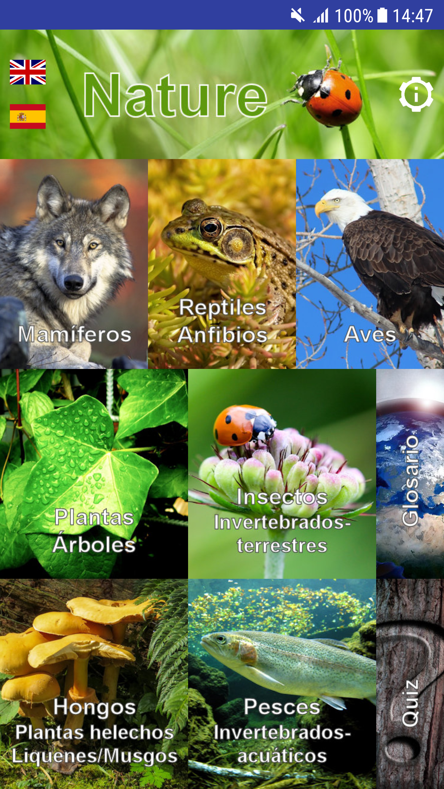 Banner 3, Mamíferos, by WeAppU; Reptiles/Anfibios, by saguari; Aves, by Alexas_Fotos; Plantas/Árboles, by Skitterphoto; Insectos/Invertebrados terrestres, by DerSilent; Hongos/Plantas helechos/Liquenes/Musgos, by Gellinger; Pesces/Invertebrados acuáticos, by mistralfamilie; Glosario, by Piro4d; Quiz, by kalhh; - Pixabay